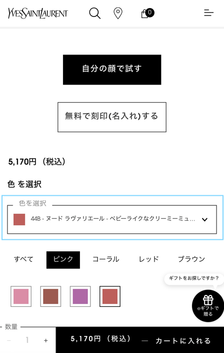 Step1)ご希望の刻印対象製品ページへアクセスする。その後、ご希望の色味を選択。
